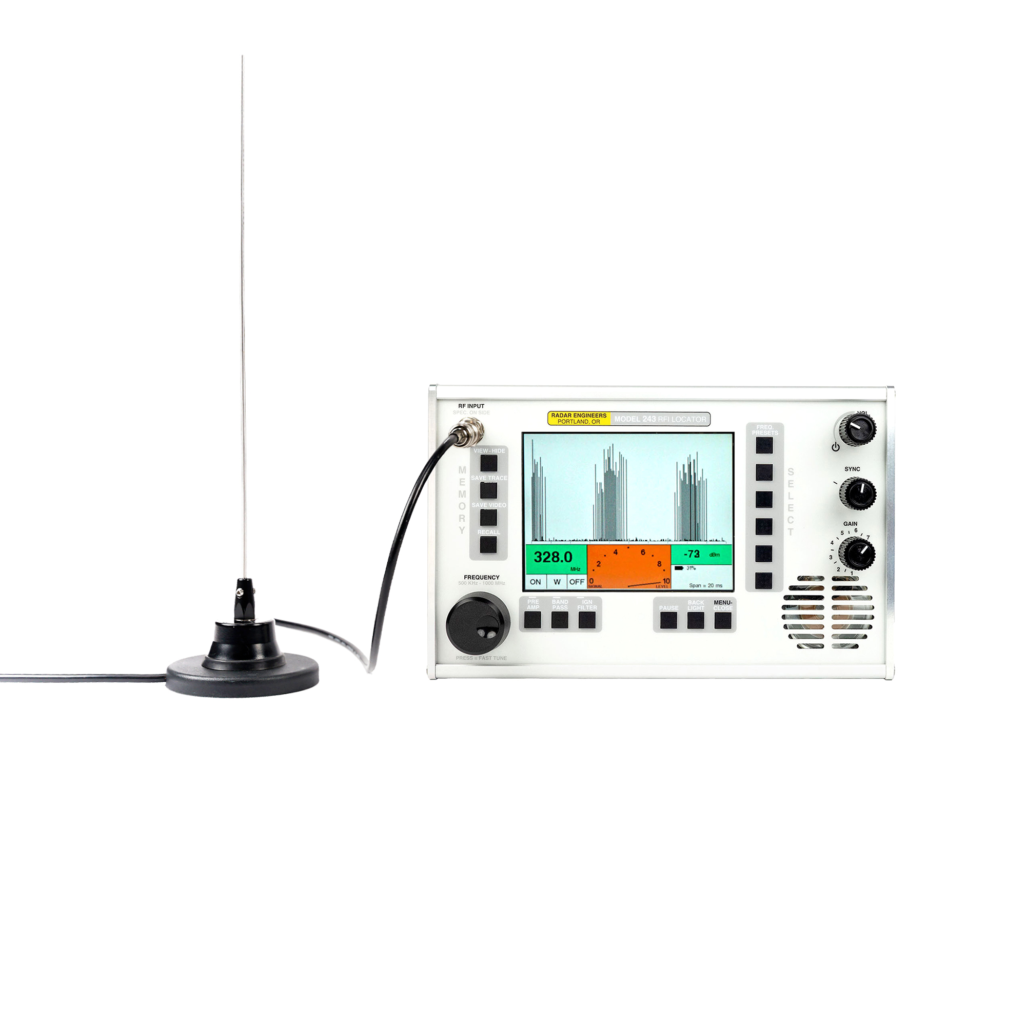 Designed for demanding field environments, the 243 arrives mission-ready with a carrying case, battery charger, mag-mount whip antenna, hand held directional antenna, and AM probe. Built for professionals who demand precision, the model 243 transforms RFI detection into a faster, smarter, and more decisive operation.
